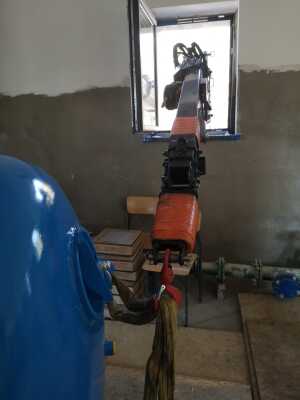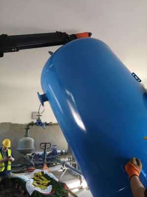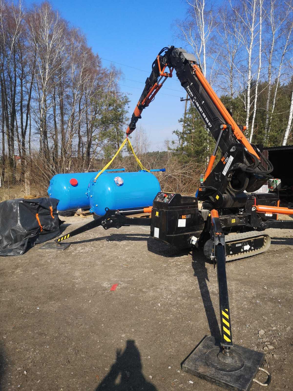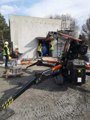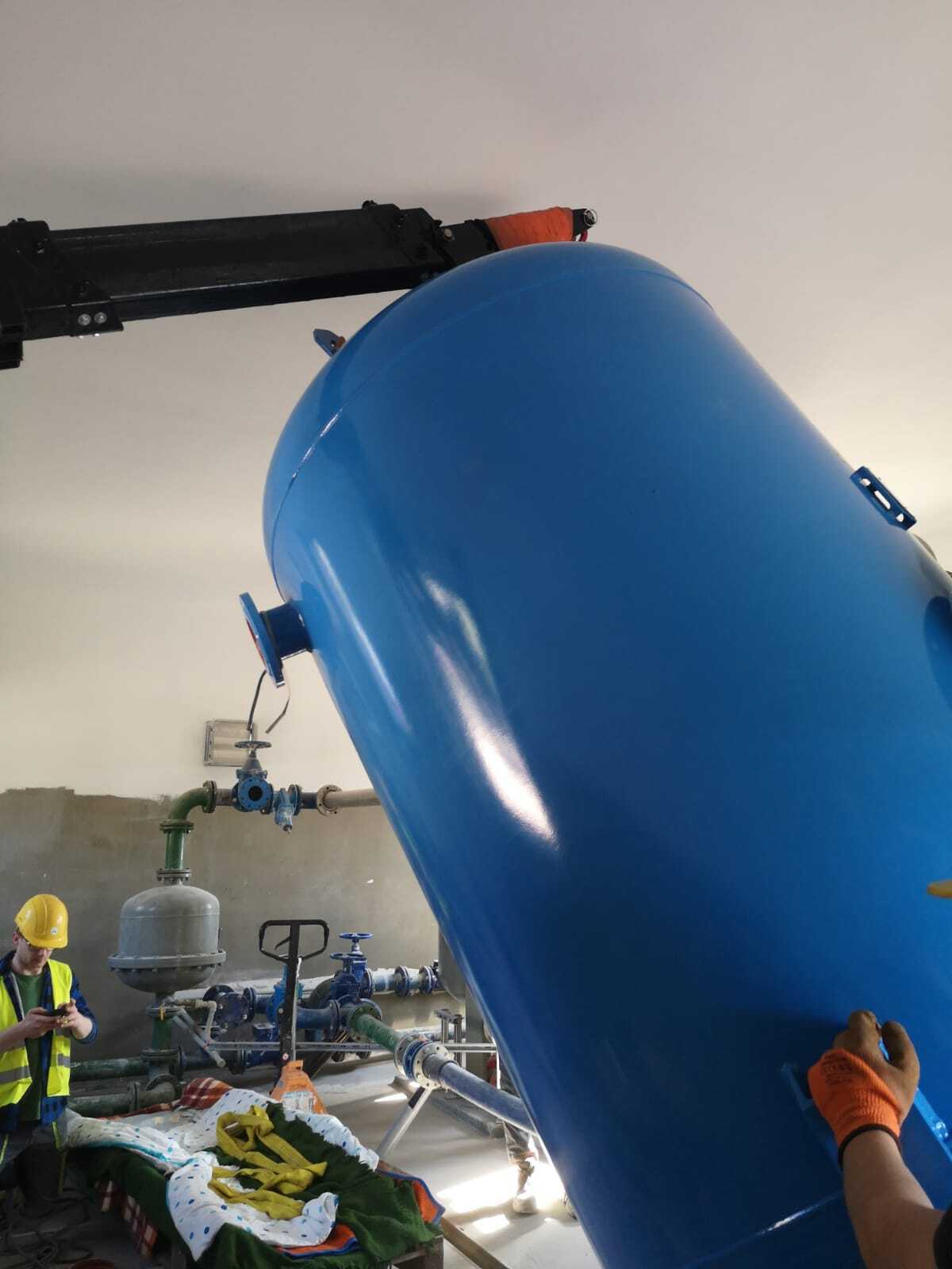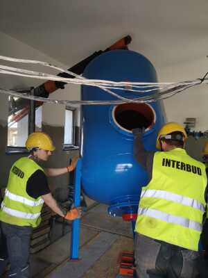 Montage von Behältern mit dem Minikran BG Lift M250 im Rahmen der Modernisierung und des Austauschs der technologischen Systeme in der Wasseraufbereitungsanlage (SUW) in Chrośna.