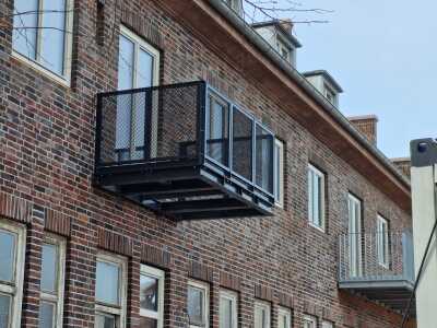 Die Ausführung der Kragbalkone mit Befestigung an Kleinescher Decke, im umbauten und renovierten Postamt in Gransee.